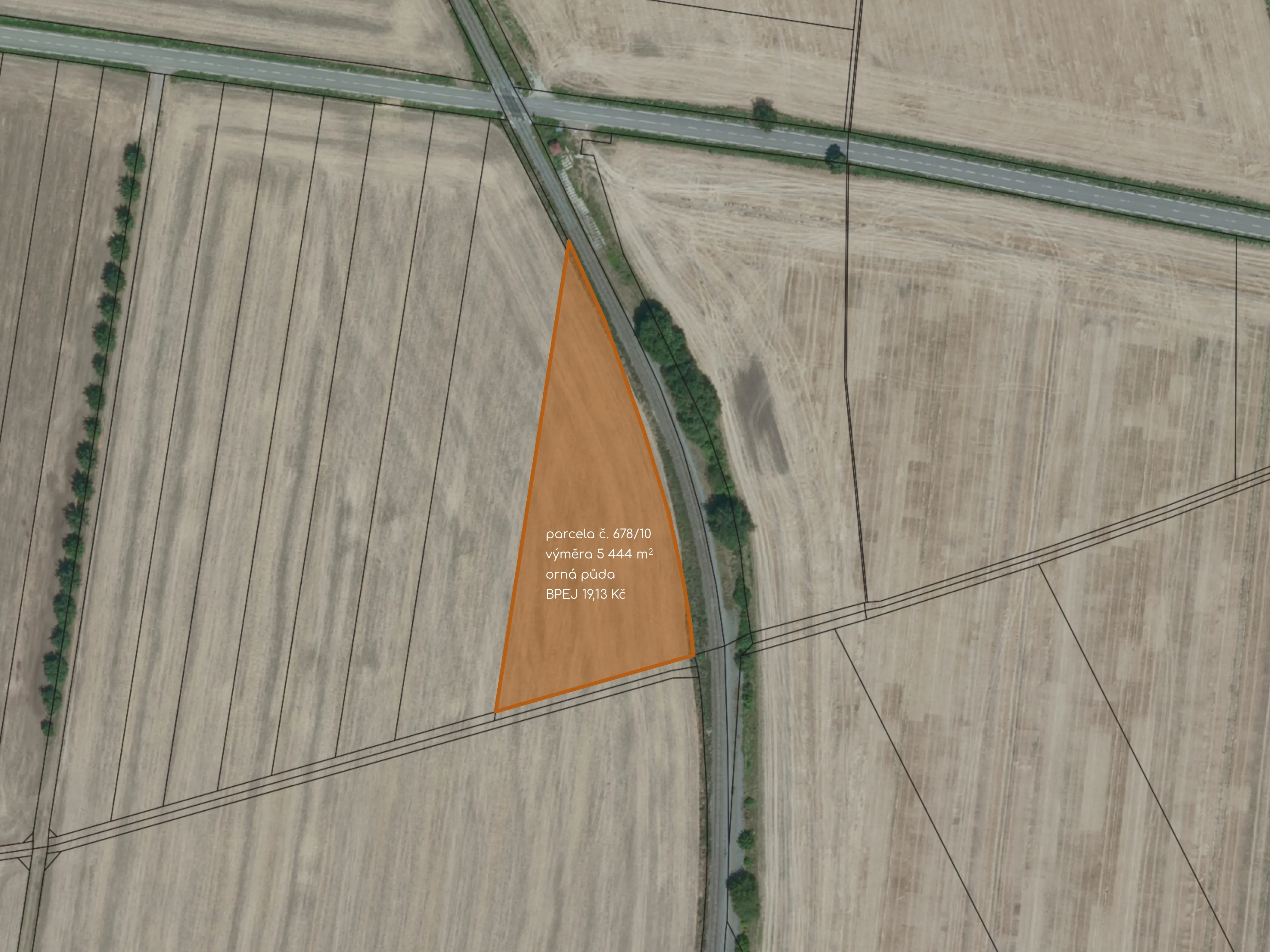 - pozemek je vedený jako orná půda a pyšní se mimořádnou bonitou (BPEJ) – 19,13 Kč z maximálních 20 Kč